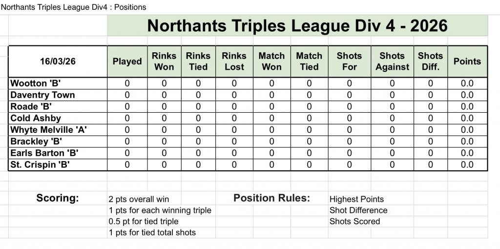 EBBC Northampton Triples League 2026 ‘B’ Team